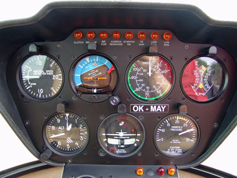 Ukazatel otáček motoru a rotoru, Citlivý výškoměr, Ukazatel plnícího tlaku, Látková sedadla, Tónovaná čelní okna a